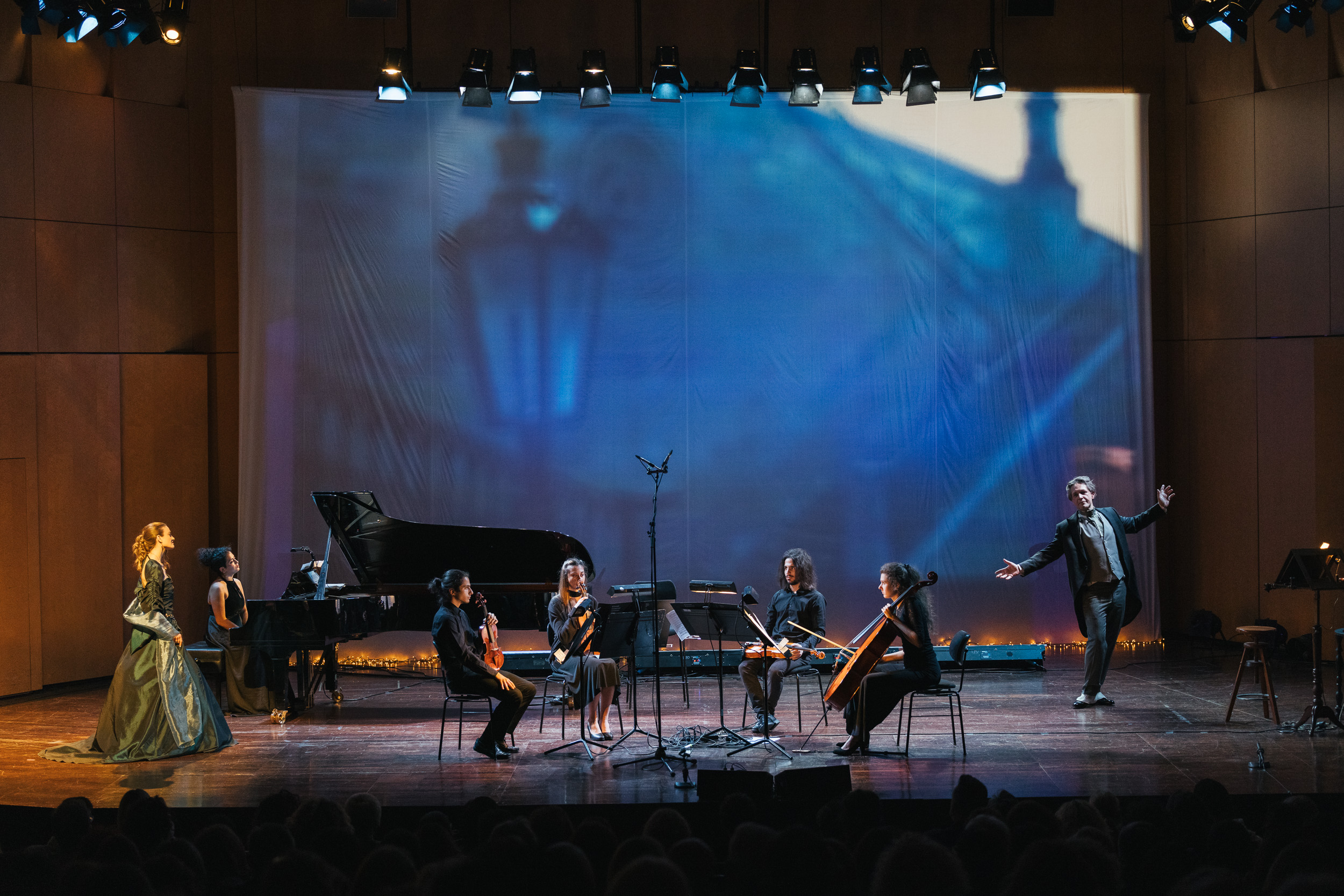 Με αφορμή την ιδέα του καλλιτεχνικού διευθυντή της ΕΛΣΟΝ και του Διεθνούς Φεστιβάλ Κέρκυρας, Διονύση Γραμμένου, η ΕΛΣΟΝ συμπράττει με τον Αιμίλιο Χειλάκη στον ρόλο του σπουδαίου ρομαντικού συνθέτη, σε ένα έργο που συνδυάζει αρμονικά τη μουσική και το θέατρο, δημιουργώντας την «τέλεια συναυλία». Μια επιλογή έργων μουσικής δωματίου του με παράλληλη αφήγηση της ζωής του. Ανάμεσά τους, η Kreisleriana για πιάνο, τραγούδια από τον κύκλο Dichterliebe (Η αγάπη του ποιητή), το Κουαρτέτο για έγχορδα, οι Παραμυθένιες εικόνες για βιόλα και πιάνο και τα Πέντε κομμάτια σε παραδοσιακό ύφος για βιολοντσέλο και πιάνο. Συμετέχουν η πιανίστα Αλεξία Μουζά και η υψίφωνος Άννυ Φασσέα ενώ το κείμενο υπογράφει η Χρύσα Ξουραφά.